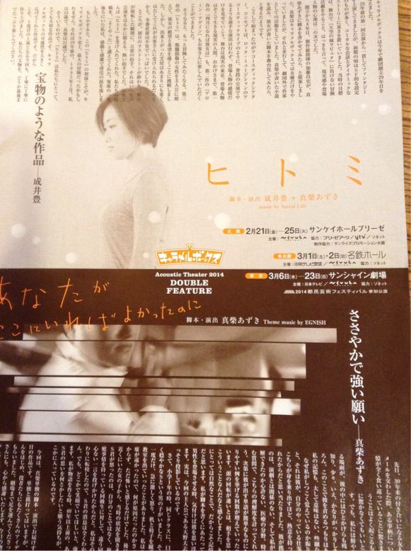 あなたがここにいればよかったのにを見終わったと思ったらヒトミのハーフプライスチケットを握りしめているではありませんか笑。丸一日キャラメルボックスに浸るという幸せ。